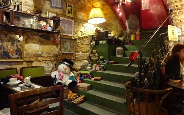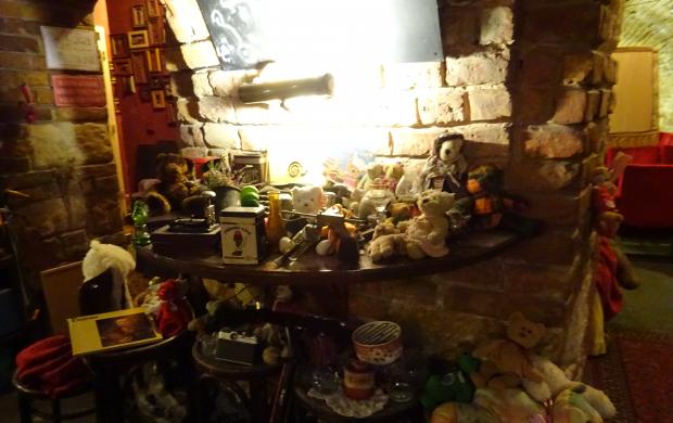Először is, medvék. Maga a kávézó egy pincehelyiségben talált otthont, szűk lépcső vezet le a zsúfolt, kicsit állott levegőjű teremkébe.